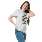 Šis dizainas tinka tiek vyrams, tiek moterims – unisex stiliaus marškinėliai dera prie kasdienės aprangos ir puikiai atrodo tiek vieni, tiek sluoksniuojami su švarku ar džemperiu.