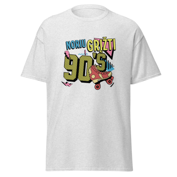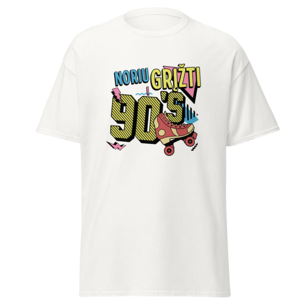 Retro marškinėliai su užrašu „Noriu grįžti į 90’s“
