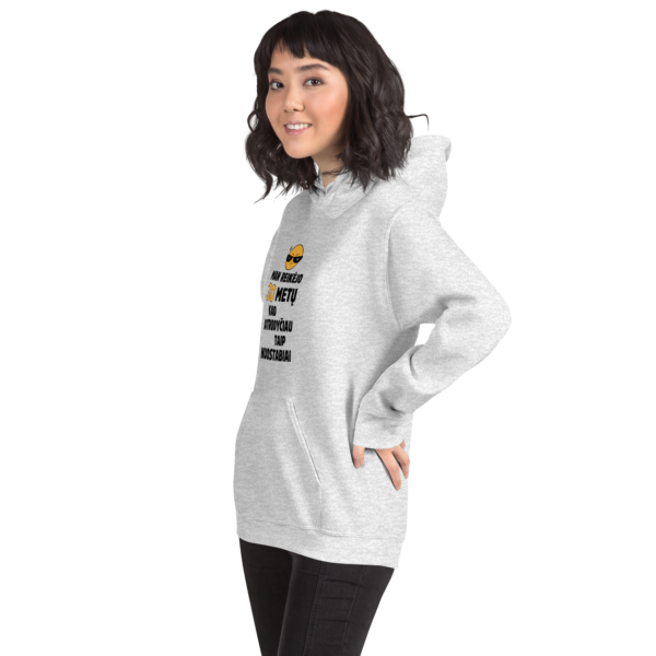 Džemperis pasižymi klasikiniu unisex kirpimu, todėl tinka tiek vyrams, tiek moterims. Vidinė pusė dengta minkštu flisiniu sluoksniu, kuris suteikia šilumą ir komfortą vėsesniu oru. Lygus audinio paviršius užtikrina aukštos kokybės spaudą – tekstas išlieka ryškus, aiškus ir ilgaamžis net po daugelio skalbimų.