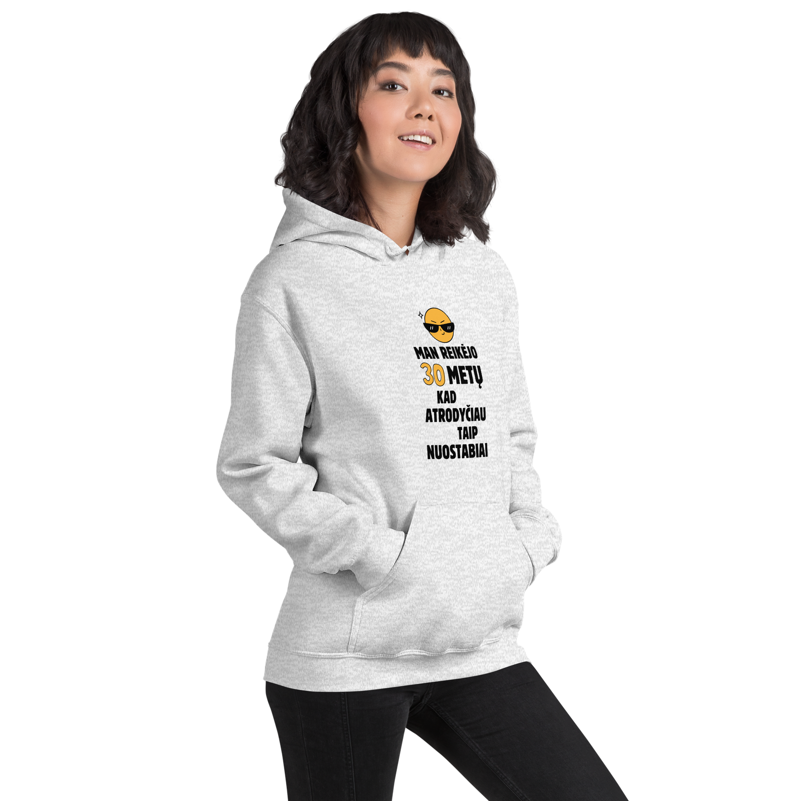 Būkite pirmas aprašęs “Šviesus džemperis su užrašu ir keičiamu amžiaus tekstu „Man reikėjo X metų””